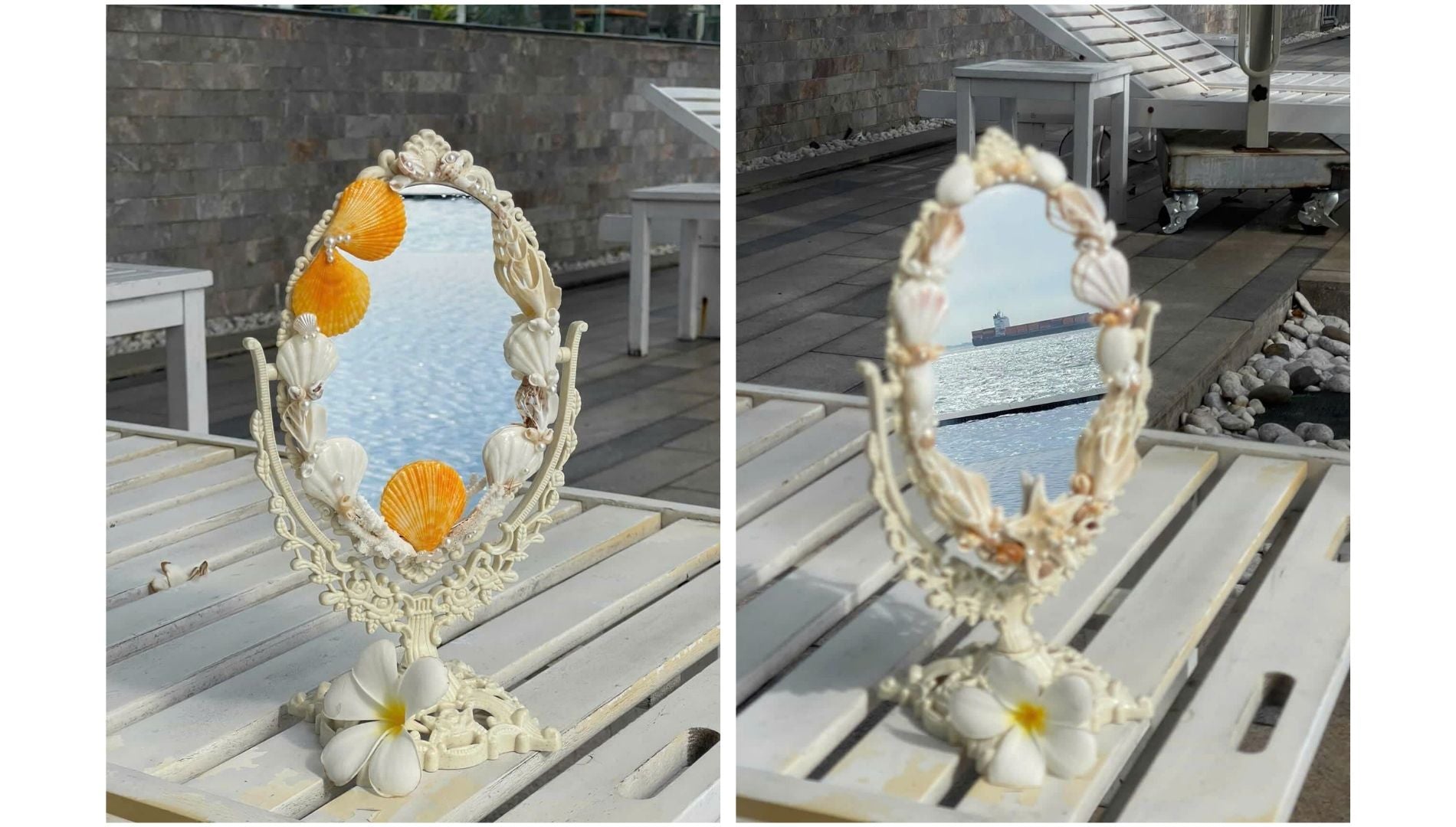 Our most-loved Handmade Seashell Vanity Mirror– elegant, unique, and inspired by the beauty of the ocean.